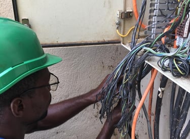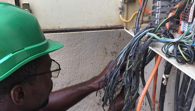 Entretien régulier et dépannage des systèmes électriques industriels.